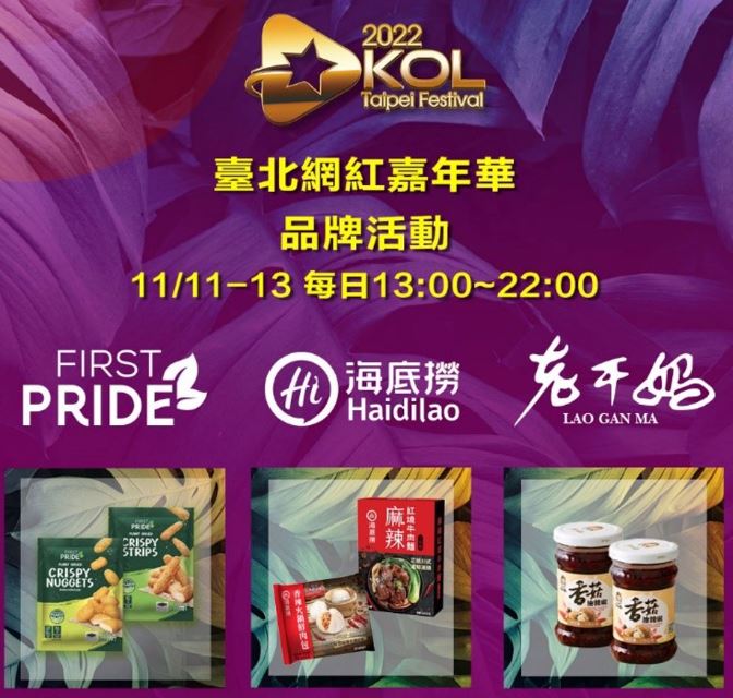 2022臺北網紅嘉年華,於11月11日至13日在信義區香堤大道盛大舉行,南聯亦舉辦新品發表快閃會活動,活動期間,每日舉辦限時促銷活動,海底撈每日下午13:00~16:00將限量150位參與轉盤遊戲拿禮品;老干媽則在每日晚上19:30限量24位打卡就免費贈送1瓶老干媽;新品FIRST PRIDE植物肉在11月12日(六)下午15:00在活動現場主舞台區舉辦有獎徵答活動,邀請民眾搶先體驗。